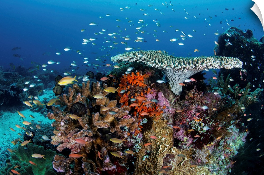 <p>A beautiful coral reef grows near an island in the Banda Sea, Indonesia.</p>