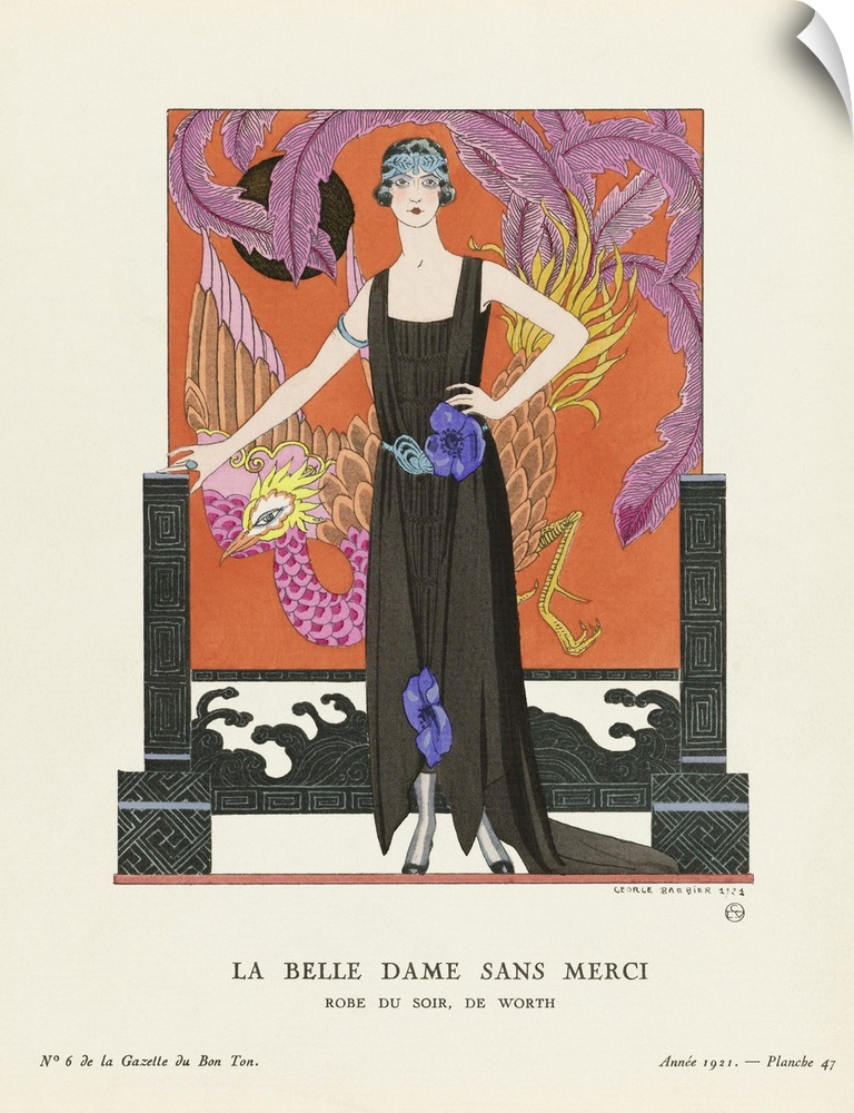 <p>La Belle Dame Sans Merci. A Beautiful, Merciless Woman. Robe du Soir, de Worth. Evening dress by Worth. Art-deco fashion illustration by French artist George Barbier, 1882-1932. The work was created for the Gazette du Bon Ton, a Parisian fashion magazine published between 1912-1915 and 1919-1925.</p>