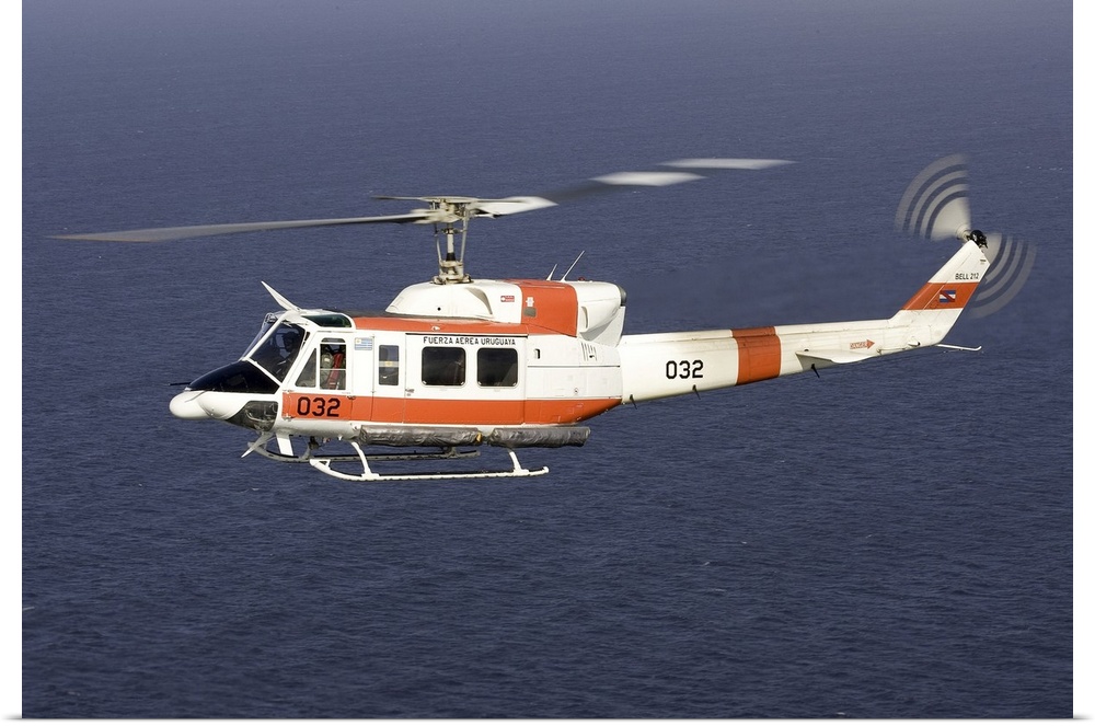 <p>A Bell 212 helicopter of the Uruguayan Air Force off the coast of Montevideo, Uruguay.</p>