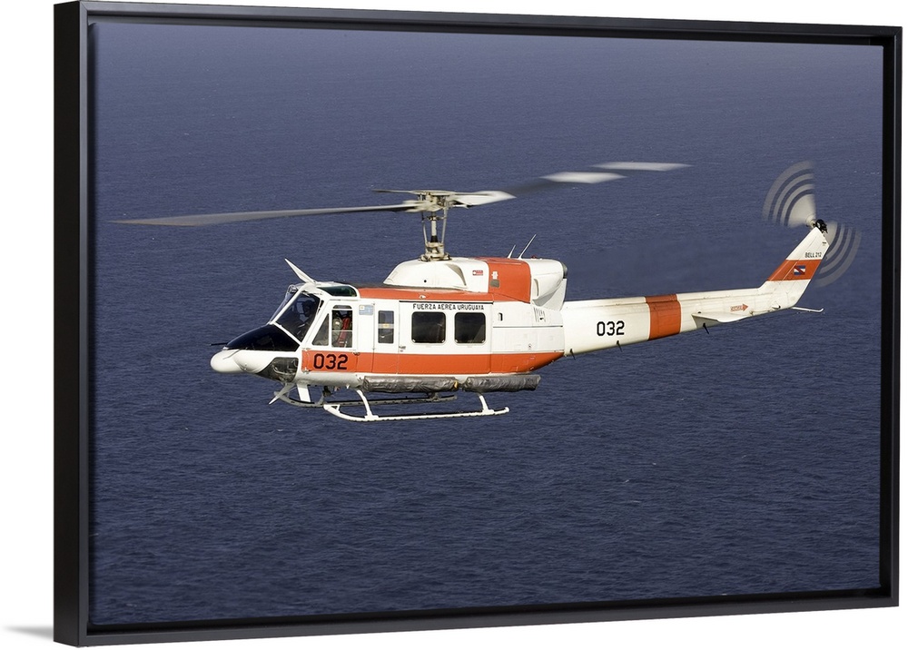 <p>A Bell 212 helicopter of the Uruguayan Air Force off the coast of Montevideo, Uruguay.</p>