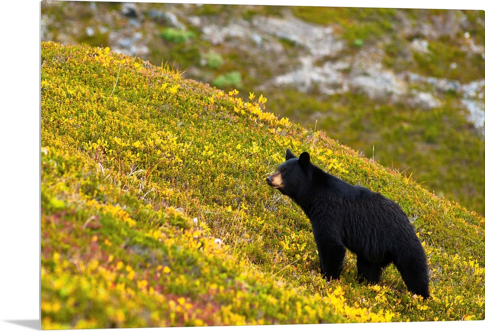 <p>A black bear foraging for berries near the Harding Icefield Trail at Exit Glacier on a fall day in Kenai Fjords National Park near Seward Alaska.</p>