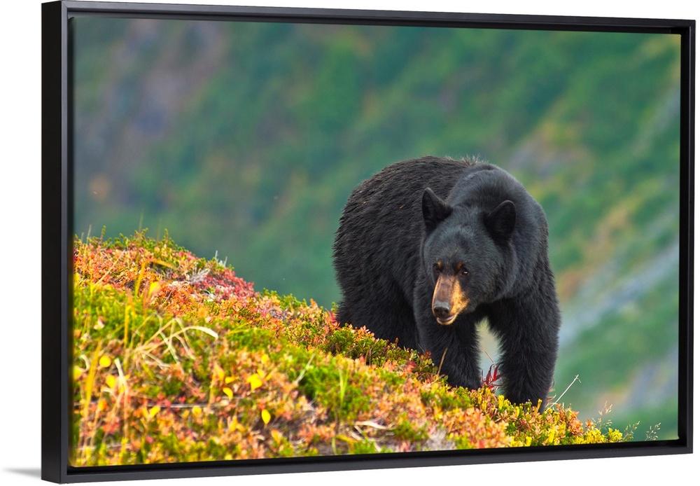 <p>A black bear foraging for berries near the Harding Icefield Trail at Exit Glacier on a fall day in Kenai Fjords National Park near Seward Alaska.</p>