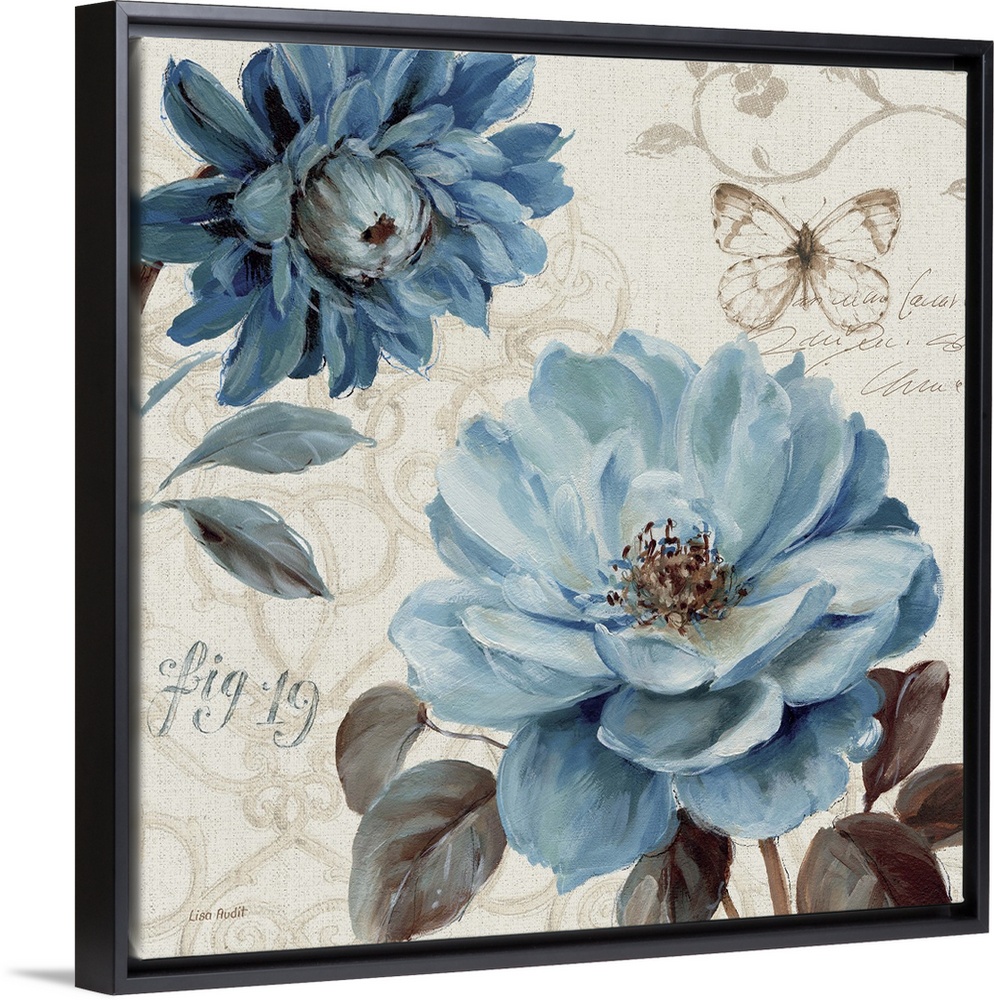 Art Traditional Lisa Audit Blue Flowers Blue Wall Art Plants and Flowers Decorative Art Dahlia Rose Painting