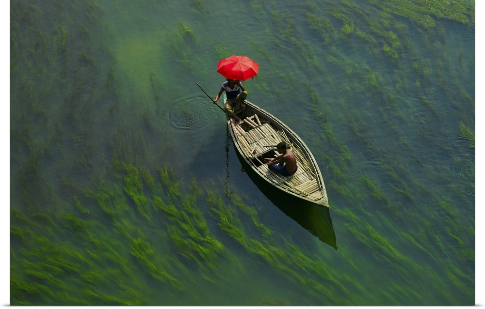 <p>A boat man crossing river with full of algae, Sirajganj, Bangladesh. Asia, Bangladesh.</p>