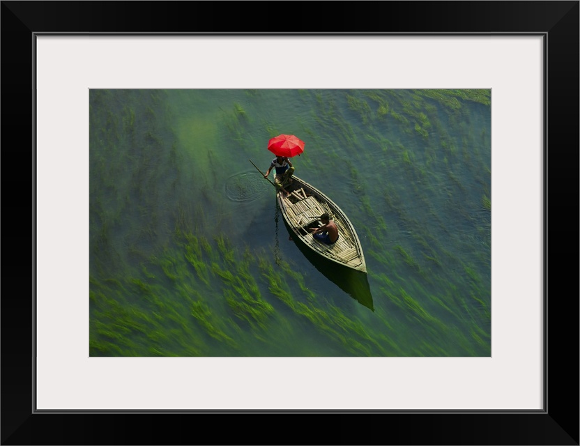 <p>A boat man crossing river with full of algae, Sirajganj, Bangladesh. Asia, Bangladesh.</p>