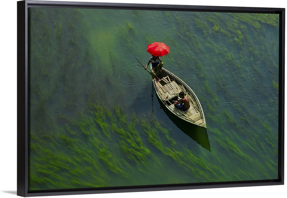 <p>A boat man crossing river with full of algae, Sirajganj, Bangladesh. Asia, Bangladesh.</p>