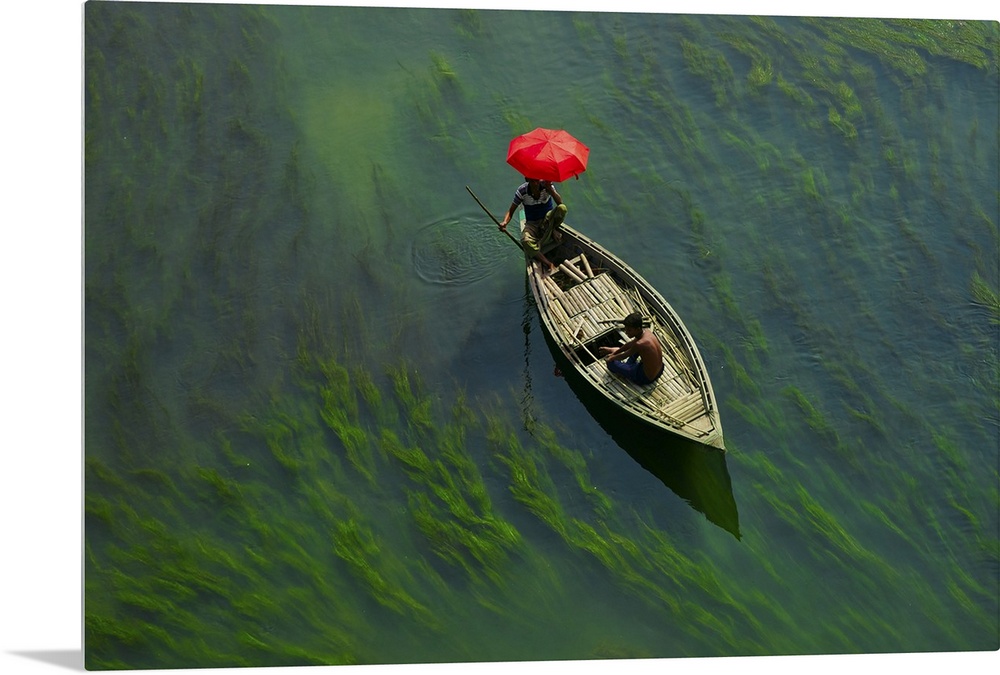 <p>A boat man crossing river with full of algae, Sirajganj, Bangladesh. Asia, Bangladesh.</p>