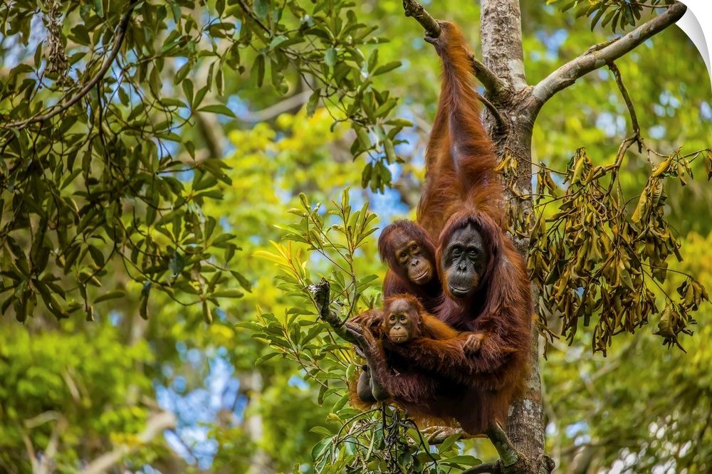 <p>A Bornean orangutan family, Pongo pygmaeus, in a tree.</p>
