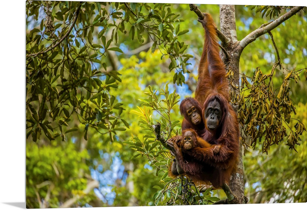 <p>A Bornean orangutan family, Pongo pygmaeus, in a tree.</p>