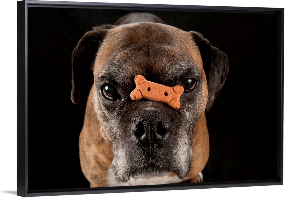 <p>A boxer named Toto balances a treat on his nose.</p>