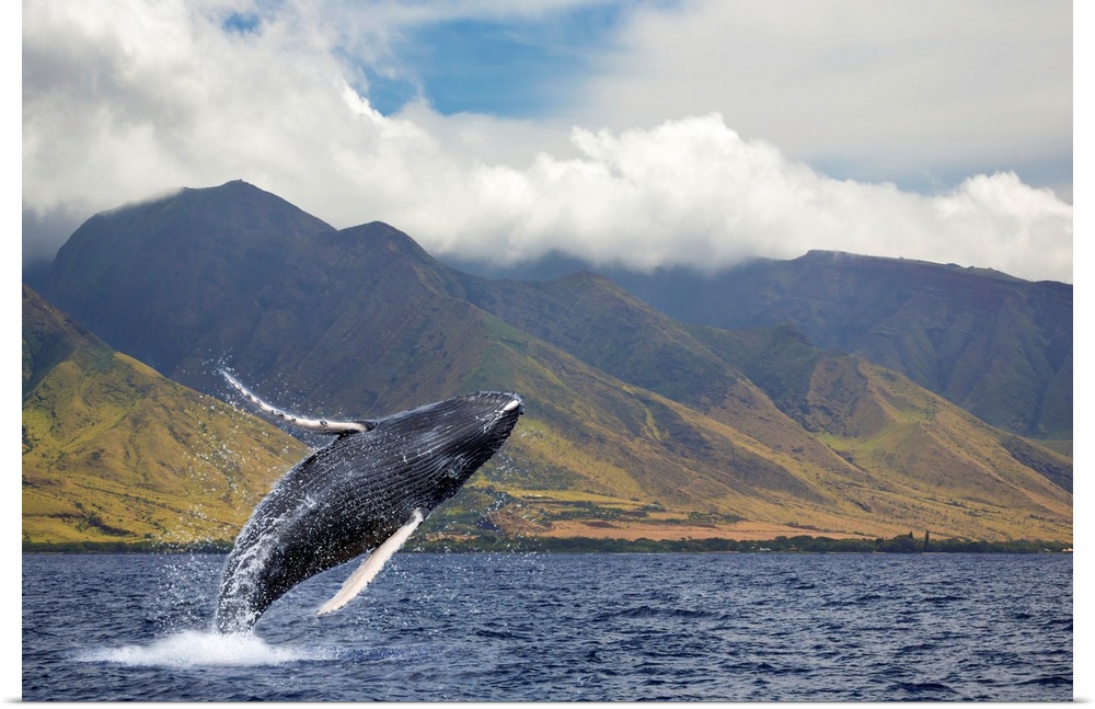 <p>A breaching humpback whale (Megaptera novaeangliae) off the West side of the island of Maui. Maui, Hawaii, United States of America.</p>