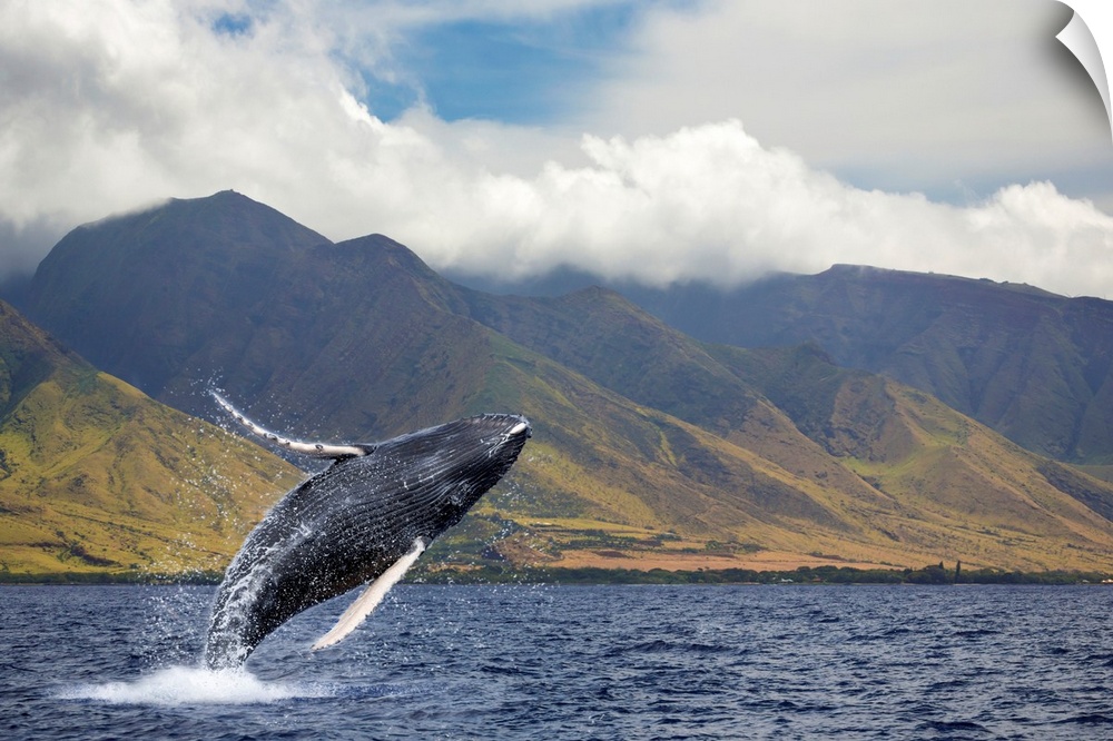 <p>A breaching humpback whale (Megaptera novaeangliae) off the West side of the island of Maui. Maui, Hawaii, United States of America.</p>