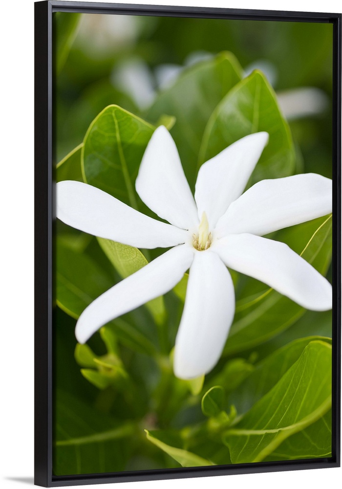 <p>Close up of a tropical white Hawaiian flower on its green leafy plant</p>