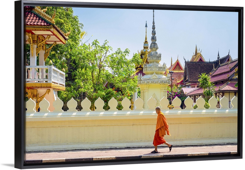 <p>A buddhist monk walks past Wat Si Saket (Wat Sisaket) temple in central Vientiane, Laos.</p>