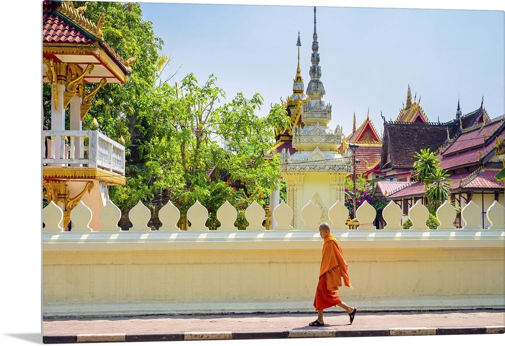 <p>A buddhist monk walks past Wat Si Saket (Wat Sisaket) temple in central Vientiane, Laos.</p>