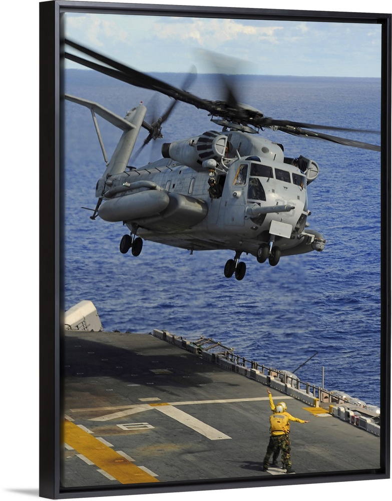 <p>Philippine Sea, September 14, 2010 - A CH-53E Sea Stallion helicopter takes off from the forward-deployed amphibious assault ship USS Essex. Essex is part of the forward-deployed Essex Amphibious Ready Group and is participating in Valiant Shield 2010, an integrated joint training exercise designed to enhance interoperability between U.S. forces.</p>