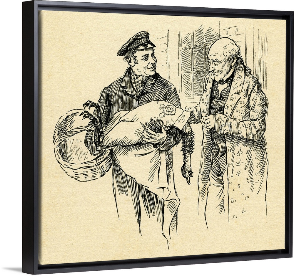 <p>A Christmas Carol' by Charles Dickens. Caption reads: Turkey is delivered on Christmas Day from Mr Scrooge. Originally Published 1843. CD: : English novelist, 7 February 1812-9 June 1870. Illustration by Harold Copping. 1863-1932 Charles Dickens-'Tiny Tim' from 'Children's Stories From Dickens' (Told by his grand-daughter, Mary Angela Dickens). Illustrated by Harold Copping. Raphael Tuck & Sons LTP, 1913. Page 54.</p>