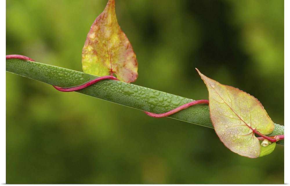 <p>A Climbing false buckwheat vine in fall colors winding around a cattail stem. Concord , Great Meadows National Wildlife , Massachusetts</p>