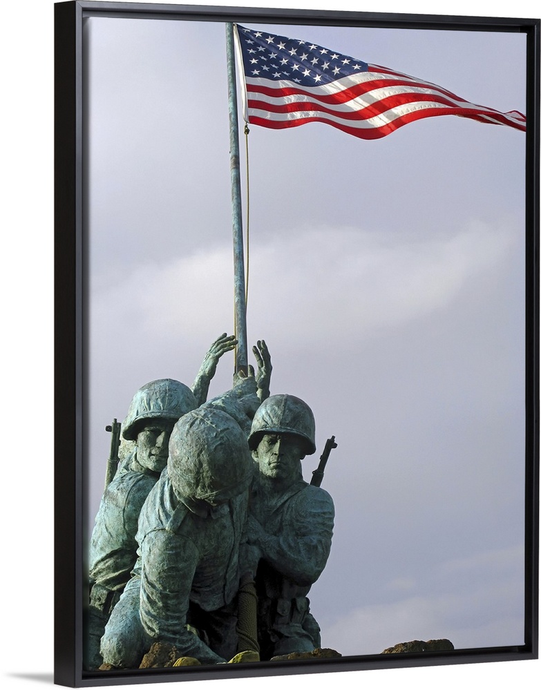 <p>Up-close photograph of monument of soldiers lifting the American flag.</p>