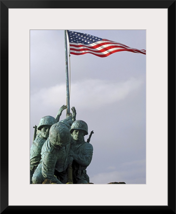 <p>Up-close photograph of monument of soldiers lifting the American flag.</p>