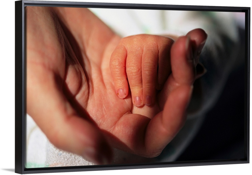<p>A close view of a mother holding her newborn baby's hand.</p>