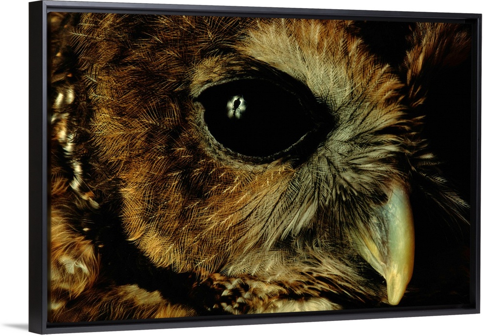 <p>A close view of a northern spotted owl, Strix occidentals occidentals, at Washington Park Zoo.</p>