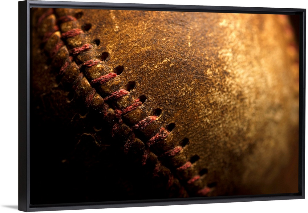 <p>A closeup of an old baseball. Shot with shallow depth of field.</p>