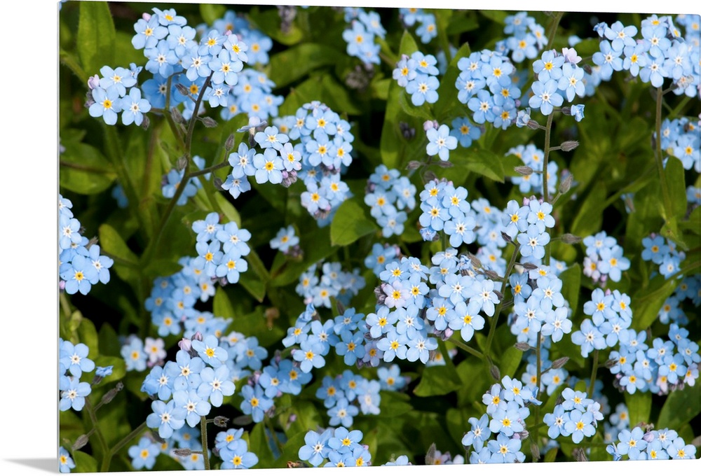 <p>A cluster of forget me not flowers, Myosotis species, in springtime.</p>