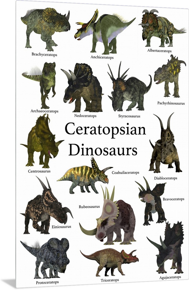 <p>A collection set of ceratops beaked dinosaurs from the Cretaceous Period of the world's history of animals.</p>