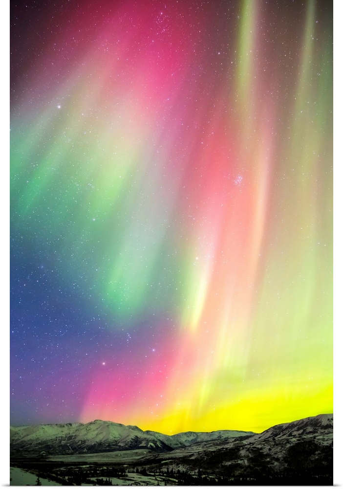<p>A colourful aurora display over Granite Mountain, south of Delta Junction; Alaska, United States of America</p>