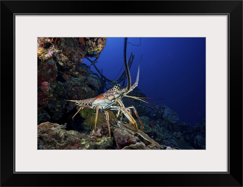 <p>A common spiny lobster backs his way into the protection of the reef, Bonaire, Caribbean Netherlands.</p>