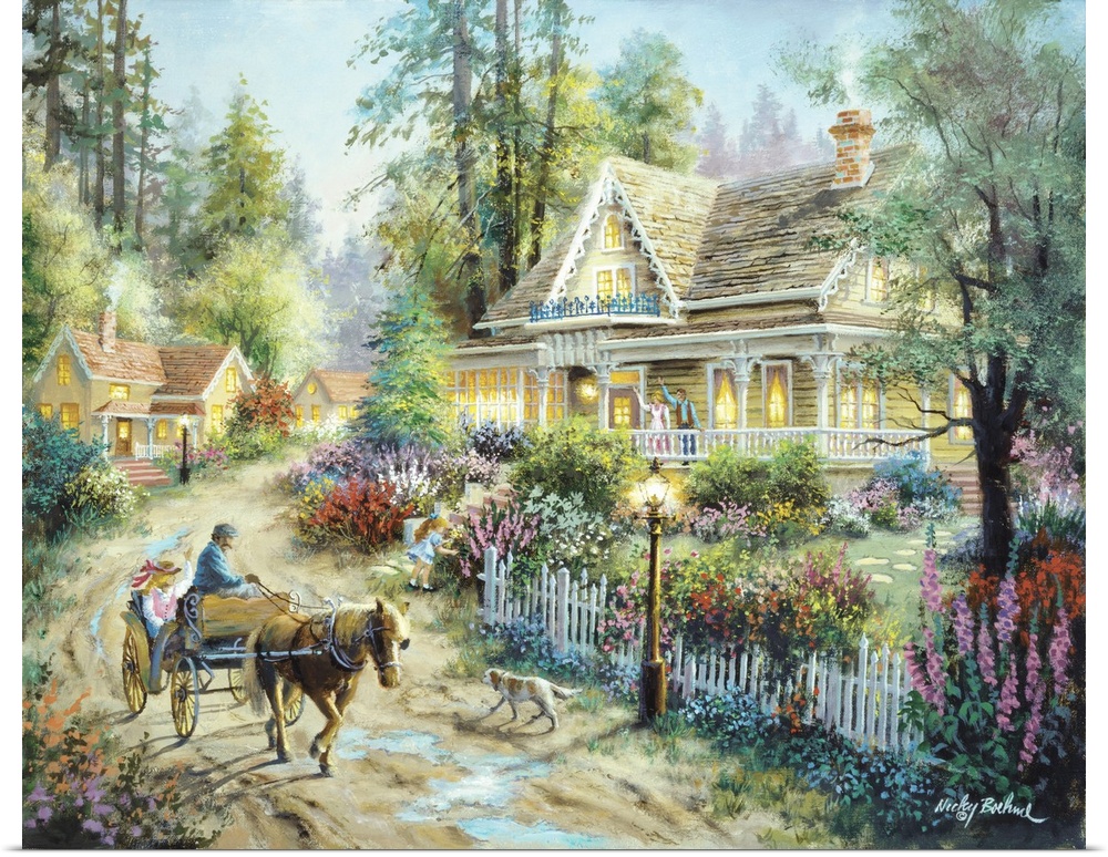 <p>Nicky Boehme imagines a world full of light and goodness in paintings that capture idyllic scenes of the laid-back life. Boehme is the consummate artist who painted as a young child and throughout her storied professional life. The dramatic interplay of light, color and mood create soothing scenery for wall art that will complement the atmosphere in quiet spaces such as bedrooms, reading nooks or dens. The world through the eyes and skilled brush strokes of Nicky Boehme glitters with romanticism and realism. You can almost taste the snow flurries covering a winter scene or hear the brook gurgling past a remote homestead.</p>