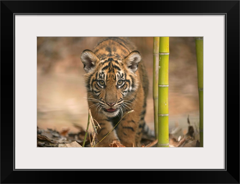 <p>A critically-endangered Sumatran tiger cub, Panthera tigris sumatrae, at Zoo Atlanta.</p>