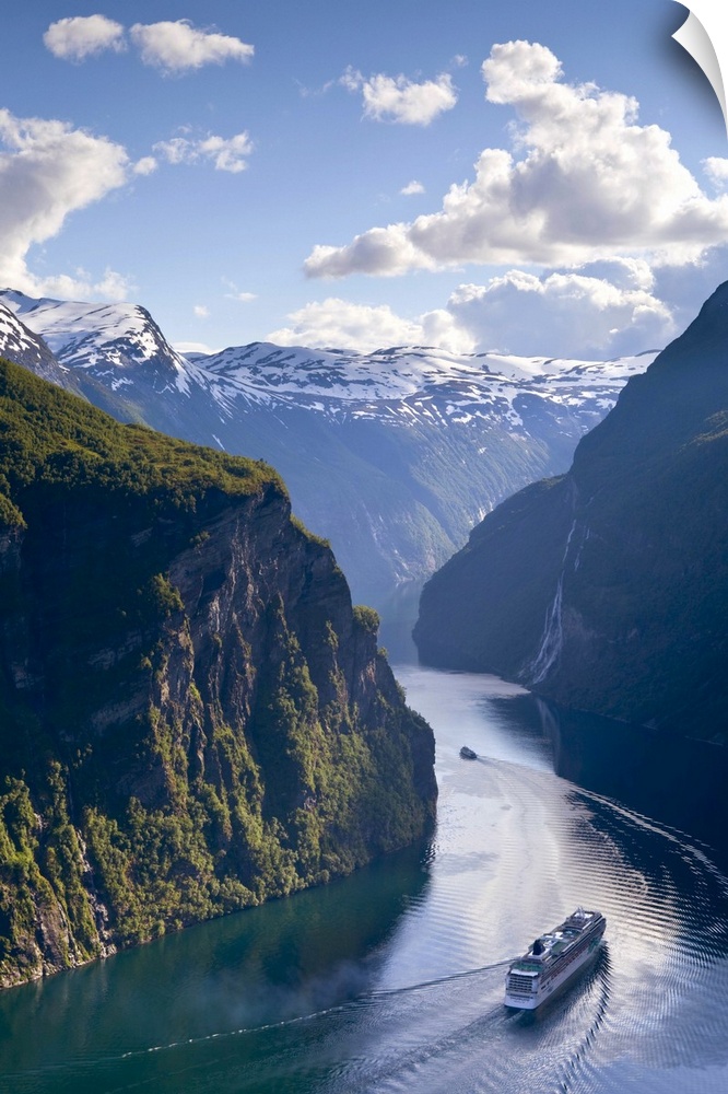 <p>A Cruize Ship navigates through a bend in the dramatic Geiranger Fjord, Geiranger, More og Romsdal, Norway</p>