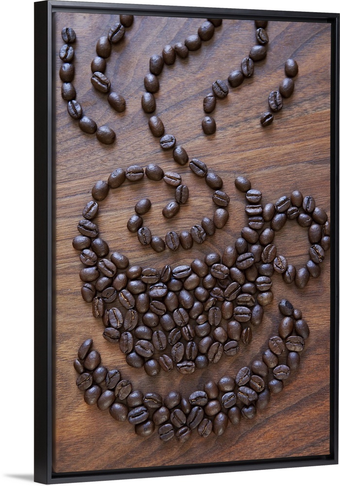<p>Coffe cup illustrated using coffee beans</p>