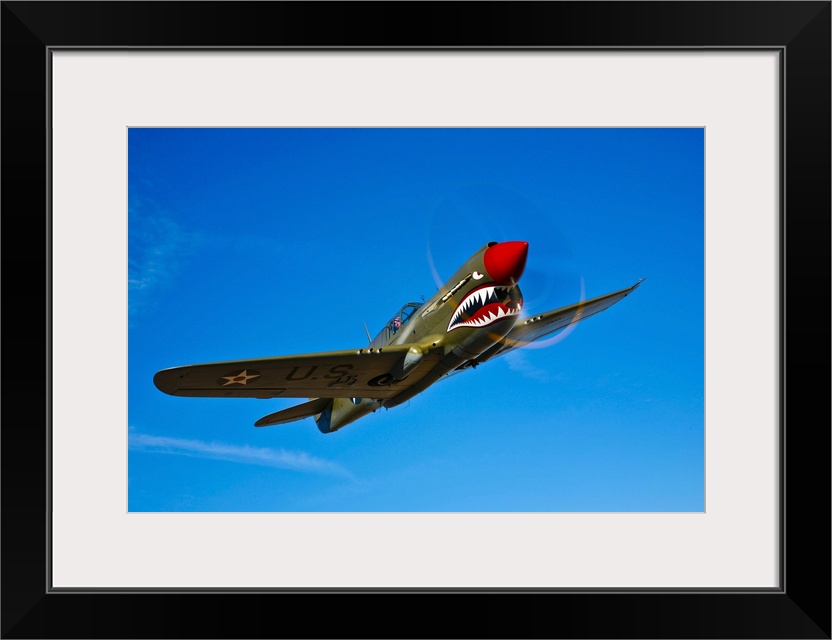 <p>A Curtiss P-40E Warhawk in flight near Chino, California.</p>