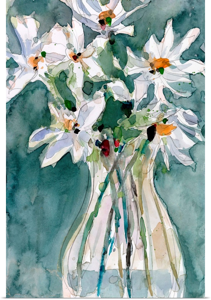 African-American Art Art Blue Wall Art Contemporary Art Plants and Flowers Samuel Dixon Florals Daisy Painting Watercolor