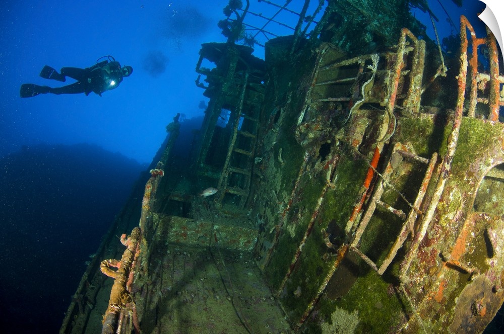 <p>A diver explores the wreck of the Soltai 61, Solomon Islands.</p>