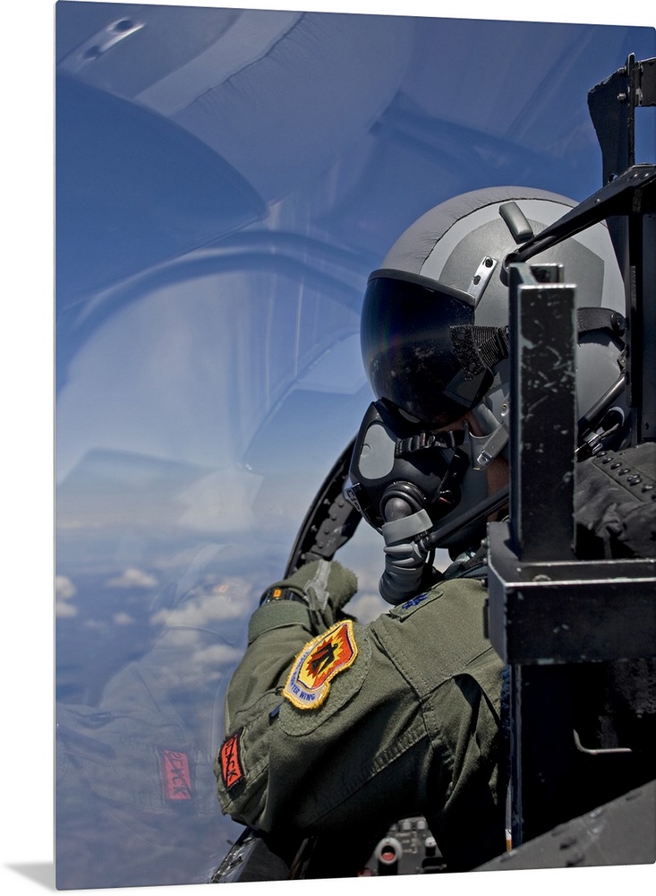 <p>A F-15 pilot from the 173rd Fighter Wing looks over at his wingman during a training mission over Central Oregon.</p>
