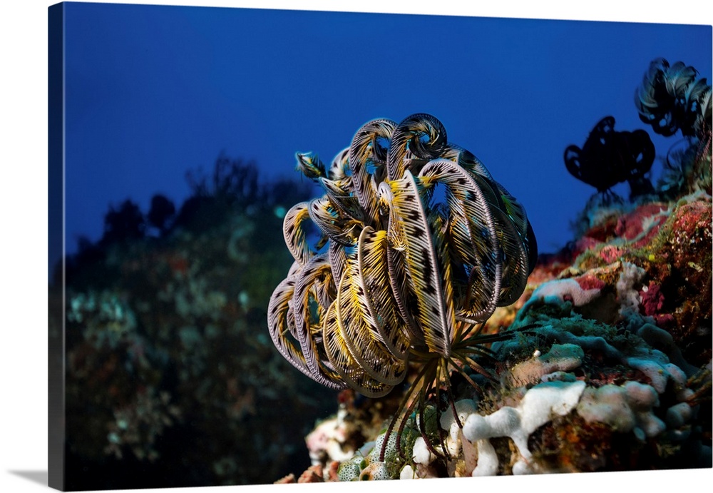 <p>A feather star is ready to feed on the particles that the current brings to it.</p>