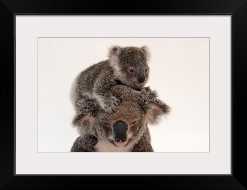 <p>A federally threatened koala climbs on top of its mother, who has conjunctivitis.</p>