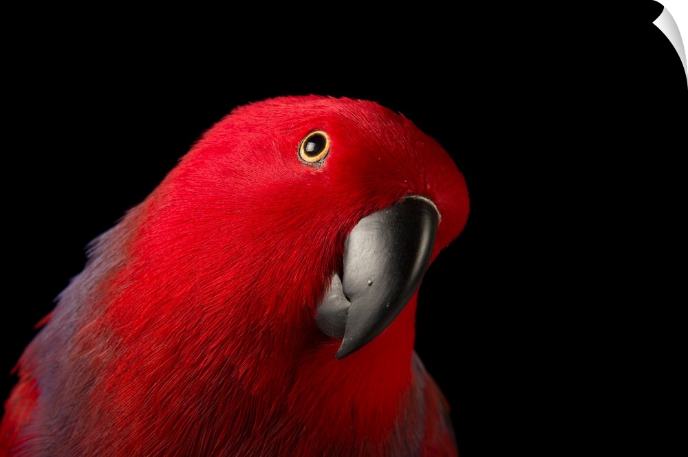 <p>A female Northern eclectus parrot, Eclectus roratus vosmaeri, at the Palm Beach Zoo. It is unusual in the parrot family for its extreme sexual dimorphism of the colors of the plumage; the male having a mostly bright emerald green plumage and the female a mostly bright red and purple/blue plumage.</p>