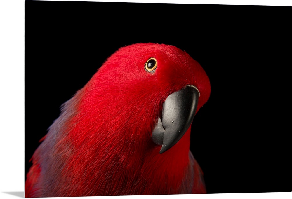 <p>A female Northern eclectus parrot, Eclectus roratus vosmaeri, at the Palm Beach Zoo. It is unusual in the parrot family for its extreme sexual dimorphism of the colors of the plumage; the male having a mostly bright emerald green plumage and the female a mostly bright red and purple/blue plumage.</p>