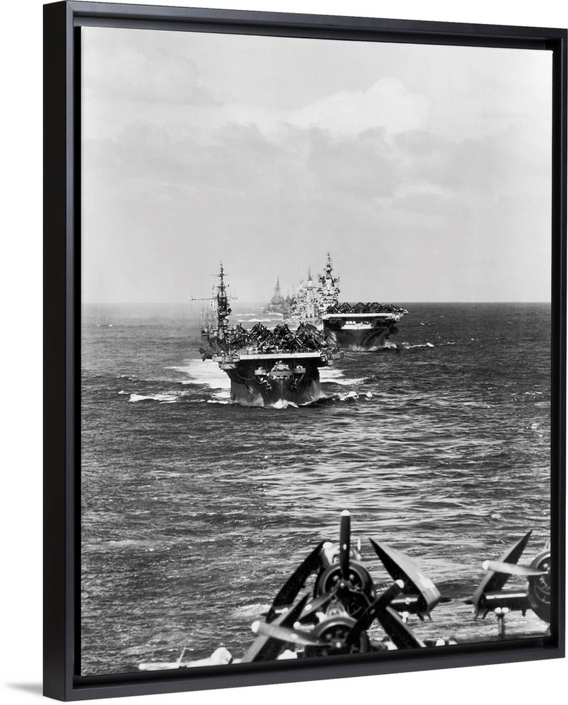 <p>A fleet of aircraft carriers led by USS Langley make their way to the South Pacific, 12 December 1944.</p>