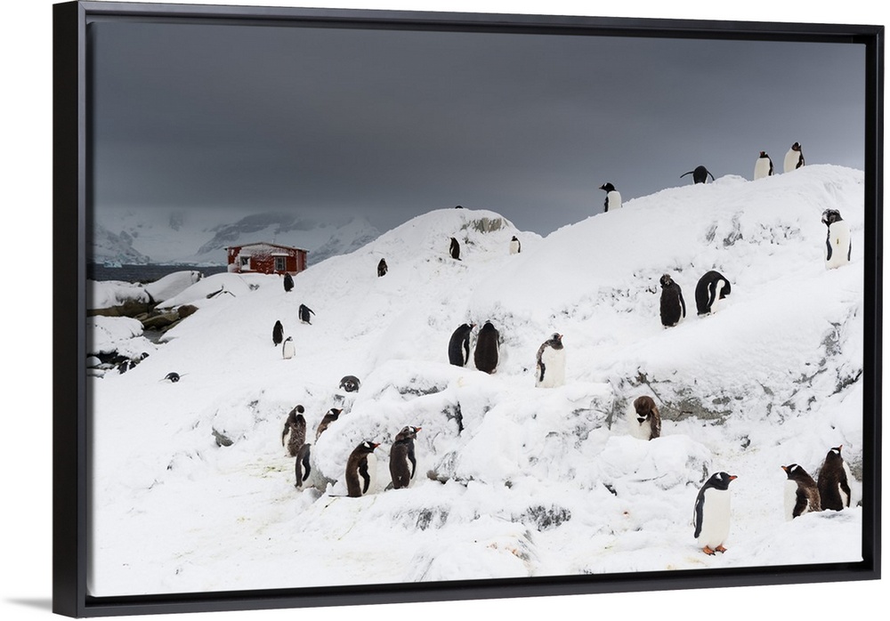 <p>A Gentoo penguin colony near Groussac Argentinian hut, Petermann Island, Antarctica</p>