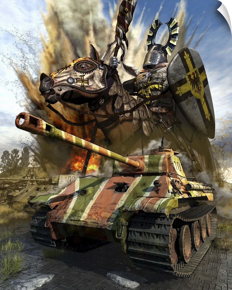 <p>A WWII German Panzer V, Panther, approaching the front lines with a spiritual force of the Teutonic Knight.</p>
