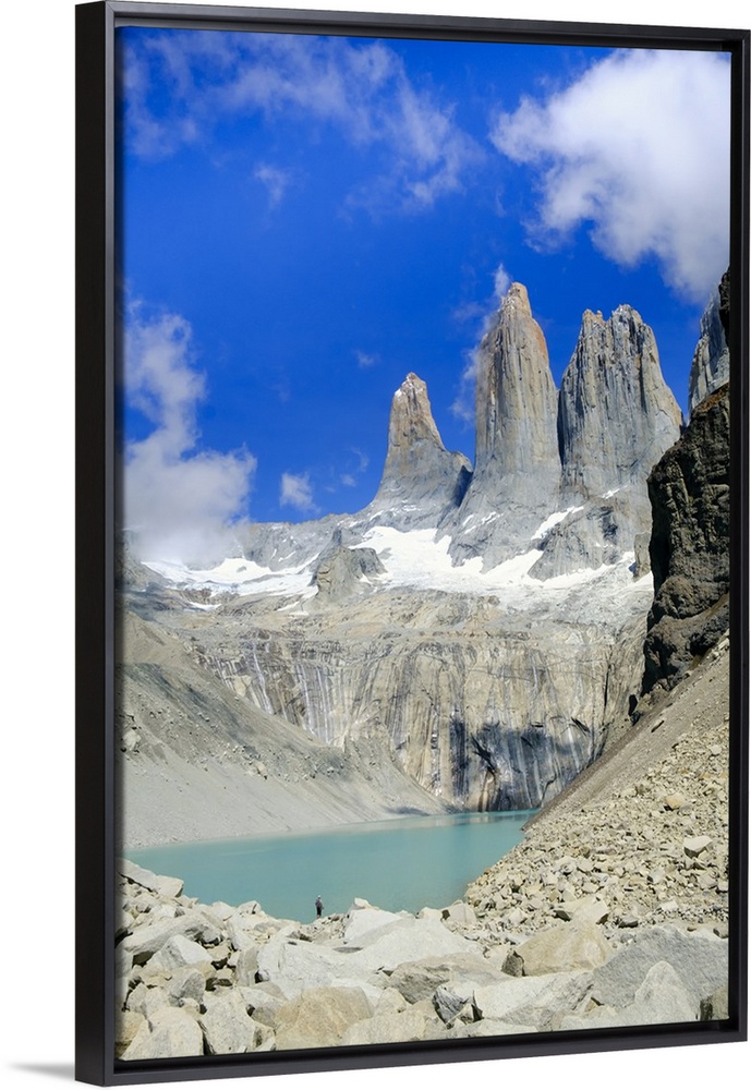 <p>A glacial lake and the rock towers that give the Torres del Paine range its name, Torres del Paine National Park, Patagonia, Chile</p>