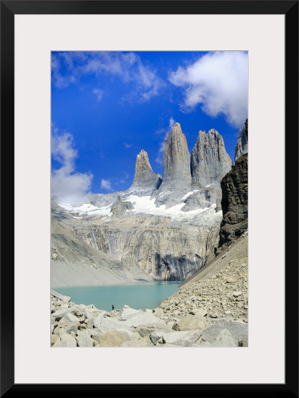 <p>A glacial lake and the rock towers that give the Torres del Paine range its name, Torres del Paine National Park, Patagonia, Chile</p>