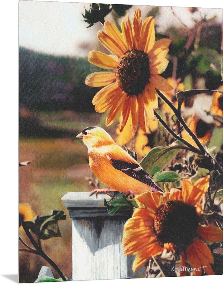 Art Contemporary Art Plants and Flowers Wildlife Kevin Daniel Florals Sunflower Painting Wildlife Bird Garden Birds