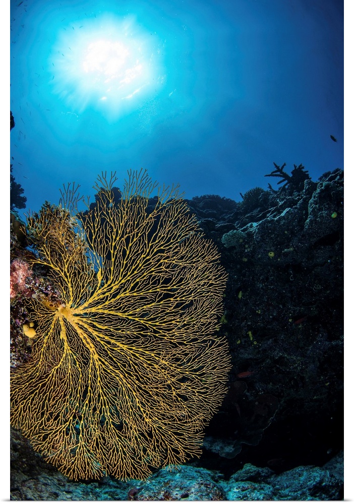 <p>A golden sea fan under the sun, Kadavu Island, Fiji.</p>